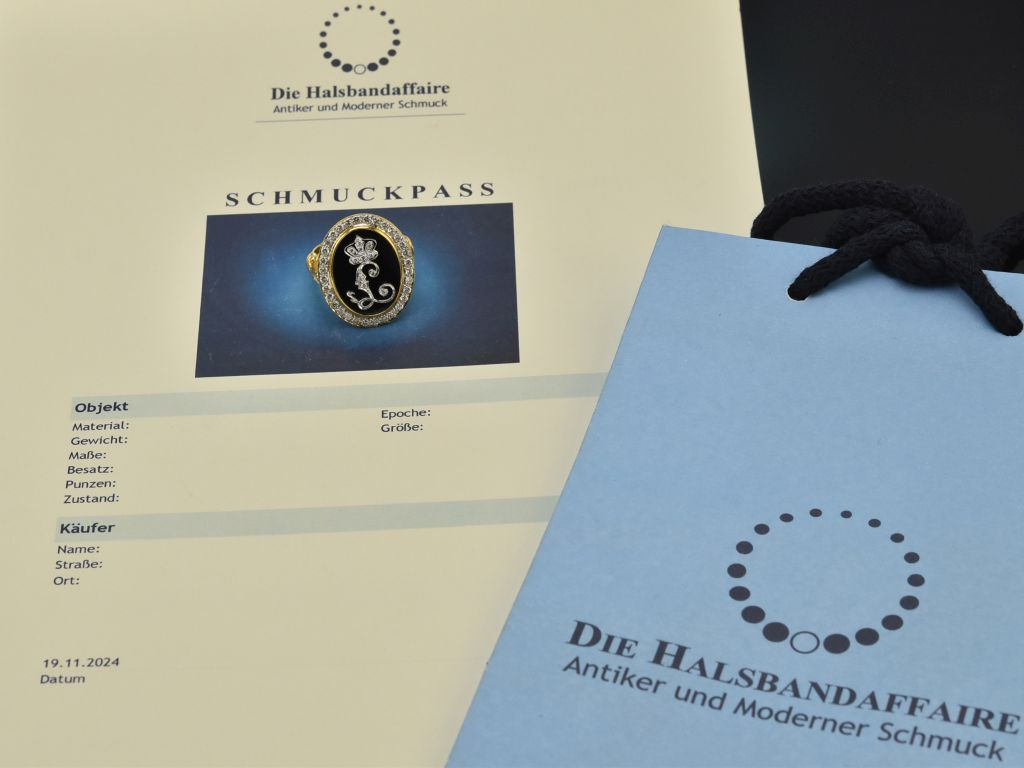 Bitte beachten Sie: Bei Vintage- bzw. Antikschmuckstücken handelt es sich um getragene Objekte, die aufgrund ihrer Historie leichte Tragespuren aufweisen können.