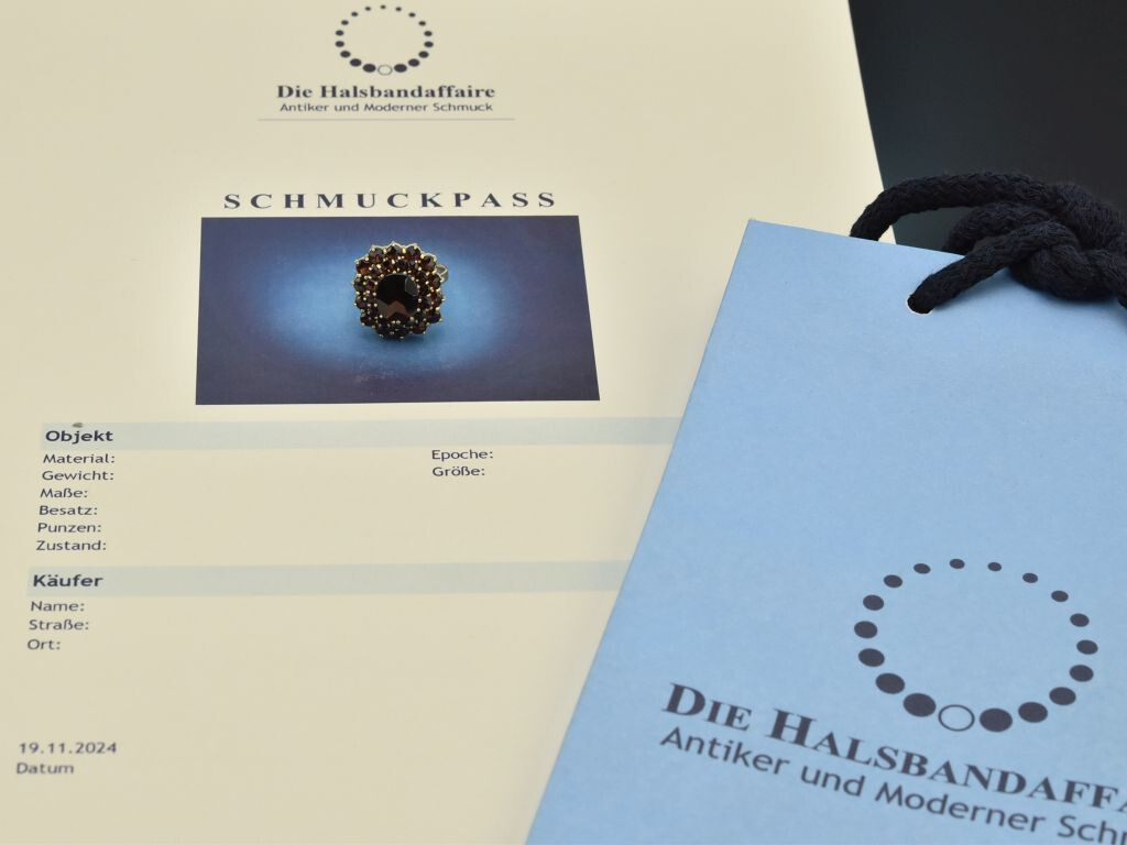 Bitte beachten Sie: Bei Vintage- bzw. Antikschmuckstücken handelt es sich um getragene Objekte, die aufgrund ihrer Historie leichte Tragespuren aufweisen können.