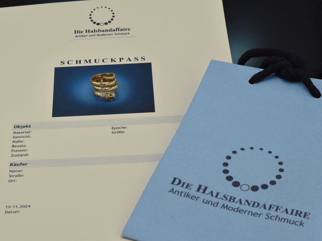 Bitte beachten Sie: Bei Vintage- bzw. Antikschmuckstücken handelt es sich um getragene Objekte, die aufgrund ihrer Historie leichte Tragespuren aufweisen können.