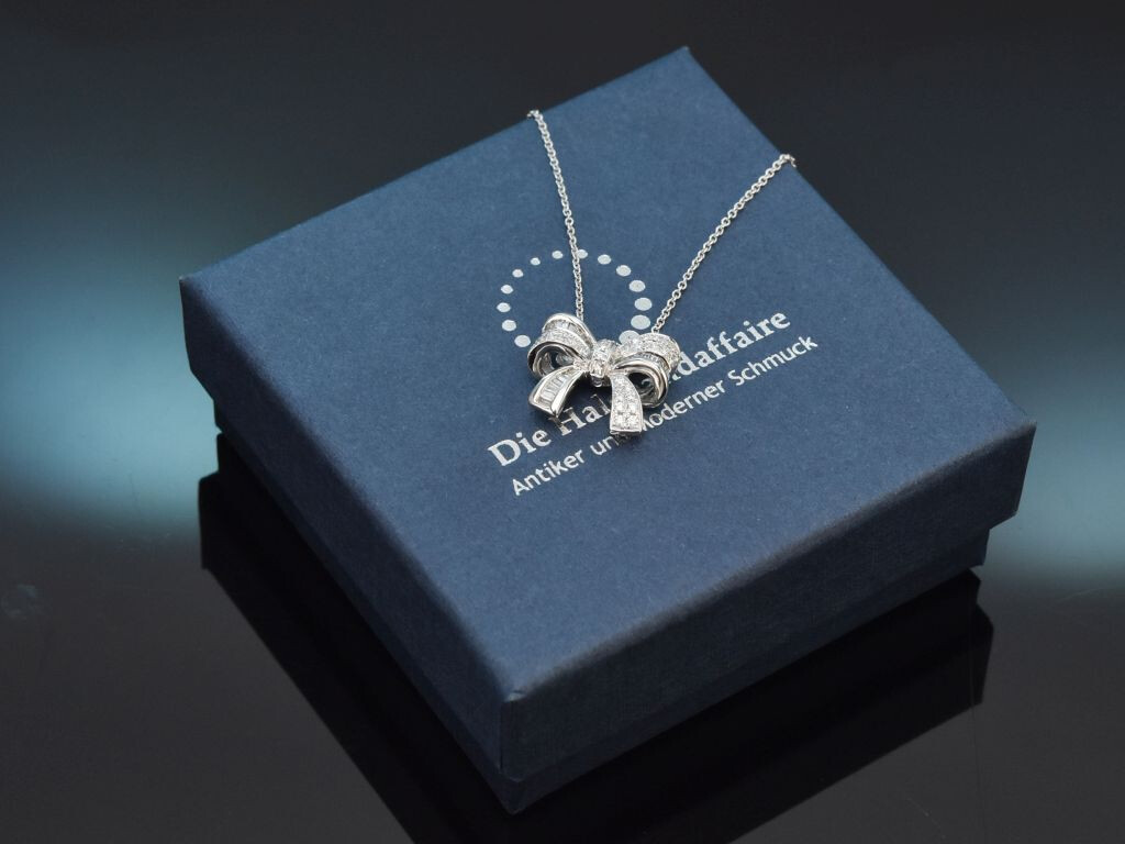 Funkelndes Schleifen Collier mit Diamanten, gearbeitet aus Weißgold 750 / 18 Kt (gestempelt und garantiert).