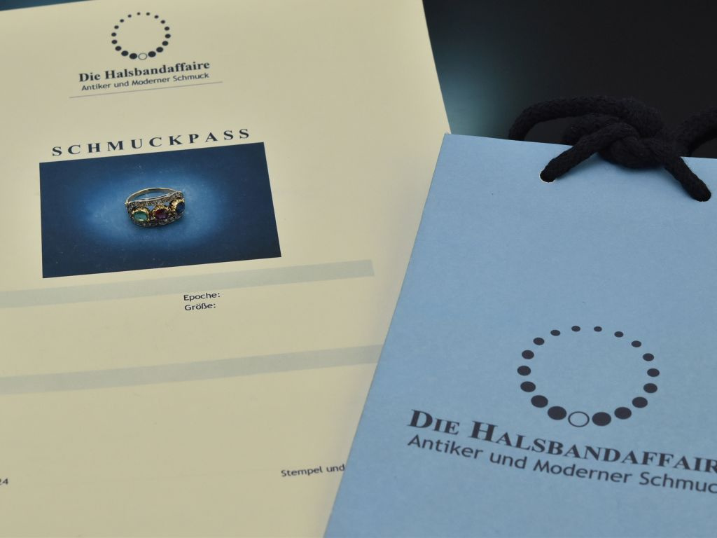 Bitte beachten Sie: Bei Vintage- bzw. Antikschmuckstücken handelt es sich um getragene Objekte, die aufgrund ihrer Historie leichte Tragespuren aufweisen können.