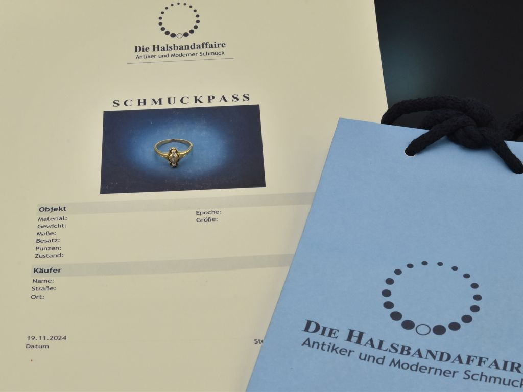 Bitte beachten Sie: Bei Vintage- bzw. Antikschmuckstücken handelt es sich um getragene Objekte, die aufgrund ihrer Historie leichte Tragespuren aufweisen können.