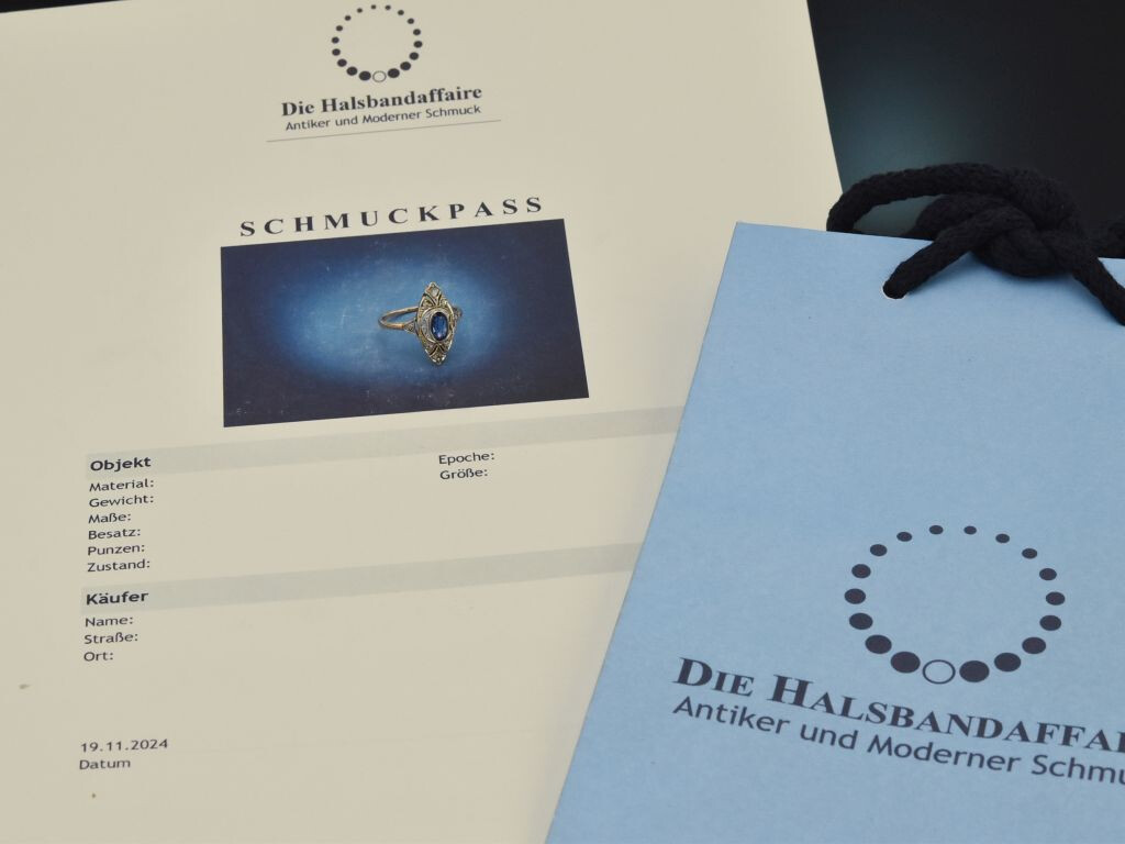 Bitte beachten Sie: Bei Vintage- bzw. Antikschmuckstücken handelt es sich um getragene Objekte, die aufgrund ihrer Historie leichte Tragespuren aufweisen können.