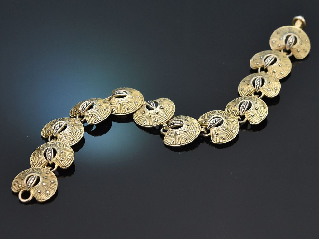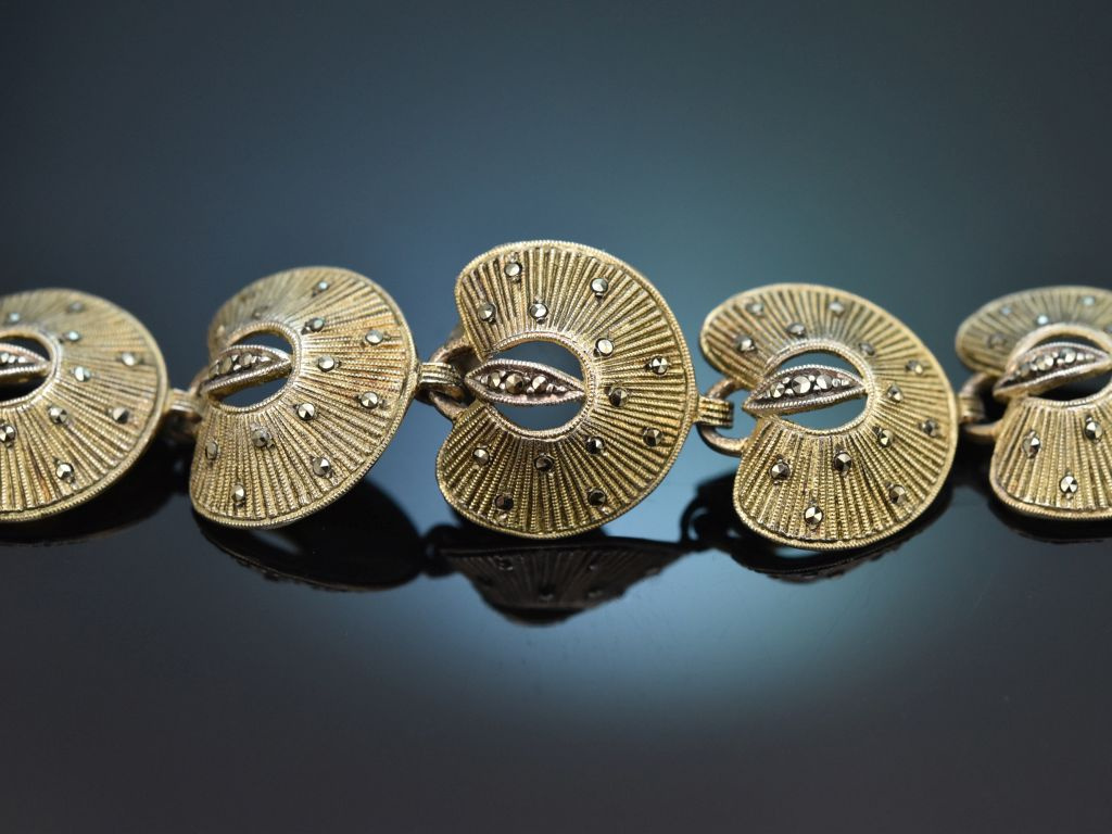 Schönes Art Deco Armband aus dem Hause Theodor Fahrner, aus vergoldetem Sterlingsilber 925 und Markasiten (gestempelt, garantiert und signiert).