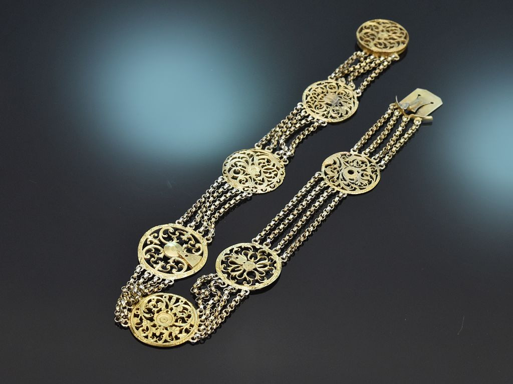 Gefertigt um 1890, erweist sich diese antike Trachtenkette als elegante Ergänzung zu Dirndl und traditioneller Tracht.