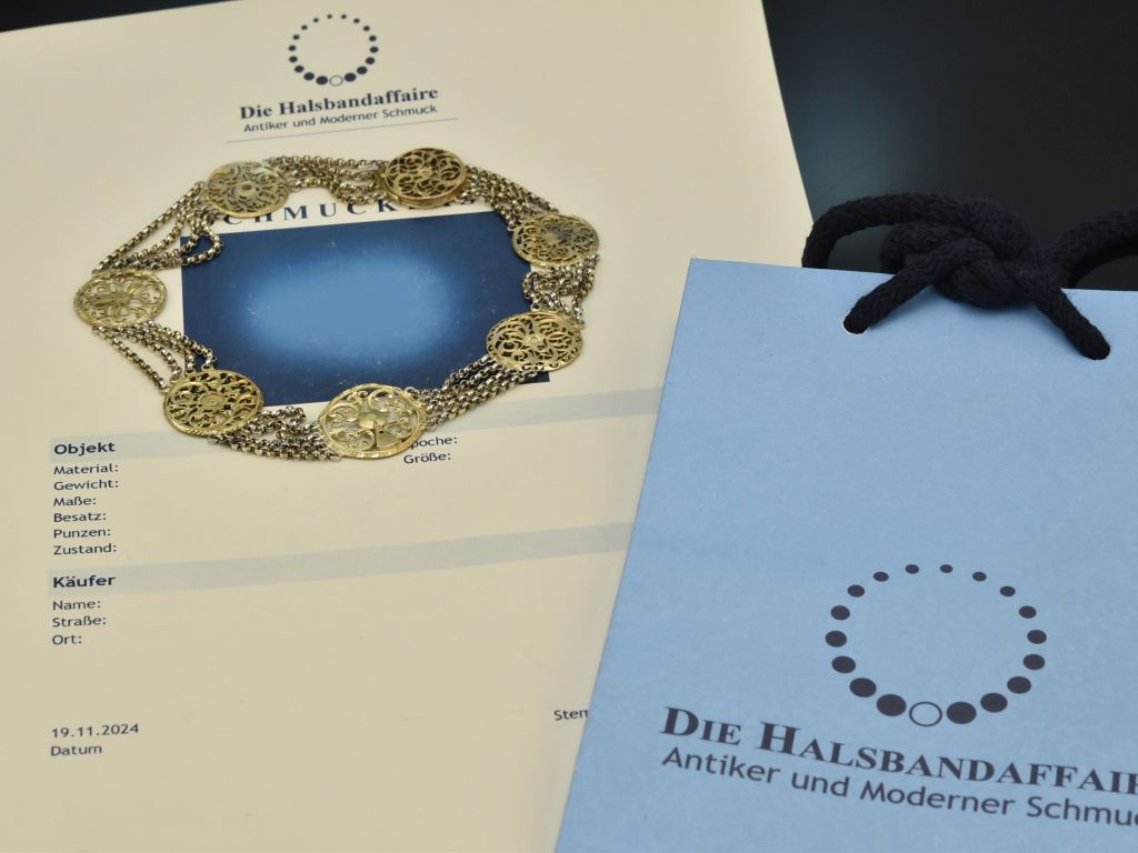 Bitte beachten Sie: Bei Vintage- bzw. Antikschmuckstücken handelt es sich um getragene Objekte, die aufgrund ihrer Historie leichte Tragespuren aufweisen können.