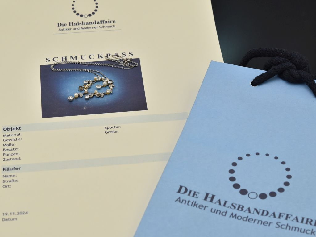 Bitte beachten Sie: Bei Vintage- bzw. Antikschmuckstücken handelt es sich um getragene Objekte, die aufgrund ihrer Historie leichte Tragespuren aufweisen können.