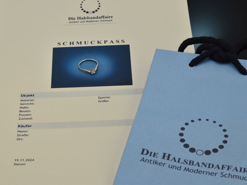 Bitte beachten Sie: Bei Vintage- bzw. Antikschmuckstücken handelt es sich um getragene Objekte, die aufgrund ihrer Historie leichte Tragespuren aufweisen können.