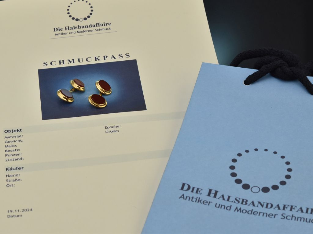 Bitte beachten Sie: Bei Vintage- bzw. Antikschmuckstücken handelt es sich um getragene Objekte, die aufgrund ihrer Historie leichte Tragespuren aufweisen können.