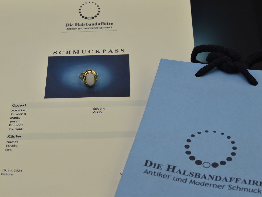 Bitte beachten Sie: Bei Vintage- bzw. Antikschmuckstücken handelt es sich um getragene Objekte, die aufgrund ihrer Historie leichte Tragespuren aufweisen können.