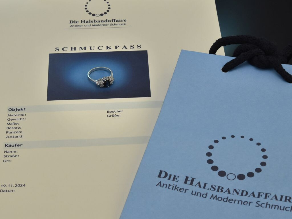 Bitte beachten Sie: Bei Vintage- bzw. Antikschmuckstücken handelt es sich um getragene Objekte, die aufgrund ihrer Historie leichte Tragespuren aufweisen können.