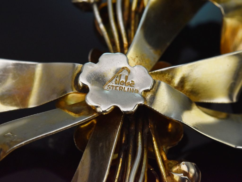 Die außergewöhnliche Brosche entstand um 1940 in den USA und stammt aus den Hause Hobé. Hobe et Cie wurde 1887 von Jacques Hobe in Paris gegründet. Seine Idee war es, mit Hilfe von Techniken der Feinschmuckschmiedekunst Schmuckstücke aus Silber und Glas, sowohl für die Mittelschicht als auch für die wohlhabende Gesellschaft herzustellen. Der 1915 von seinem Sohn William nach Amerika gebrachte Hobé-Schmuck zeichnete sich durch raffinierte Designs und überwältigende Entwürfe aus und war auch bei Hollywoodstars und Society-Berühmtheiten beliebt.