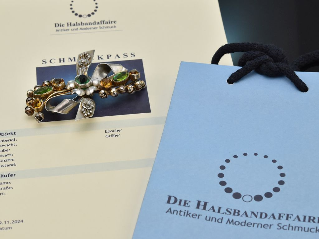 Bitte beachten Sie: Bei Vintage- bzw. Antikschmuckstücken handelt es sich um getragene Objekte, die aufgrund ihrer Historie leichte Tragespuren aufweisen können.