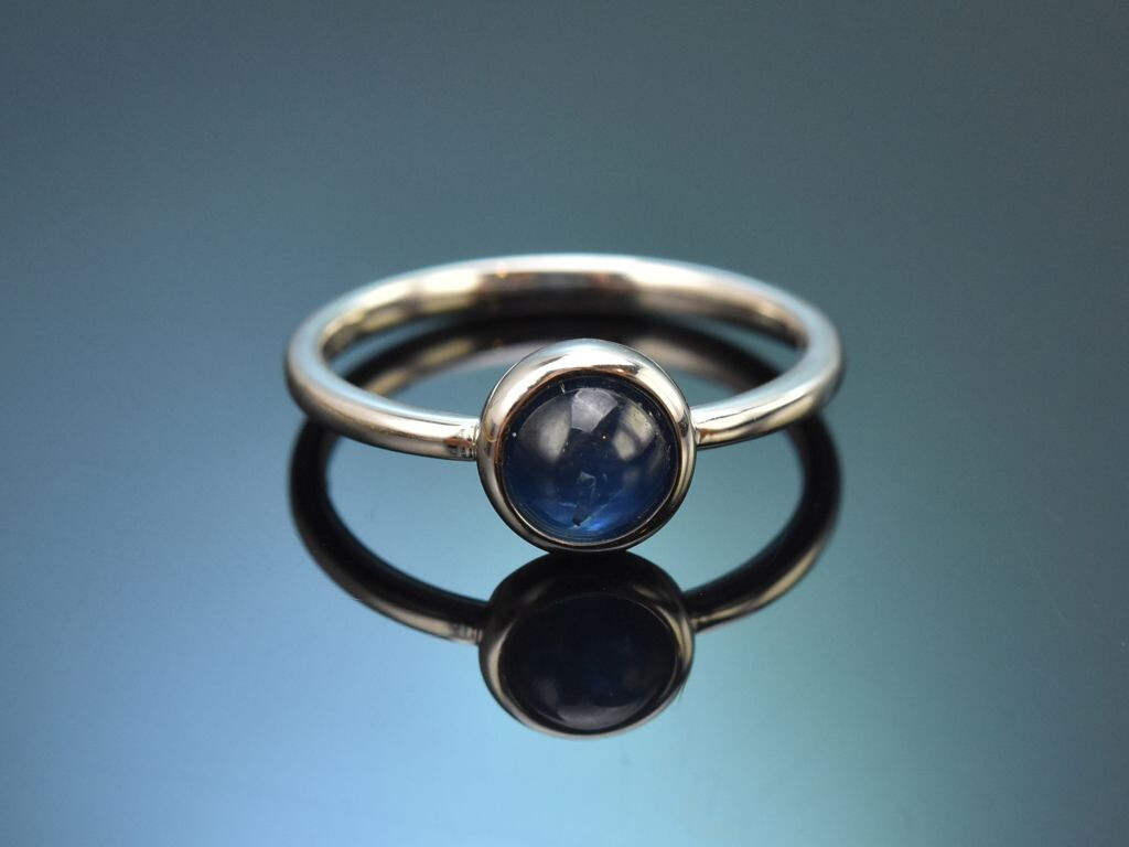Zeitloser Design Ring mit einem feinem Saphir Cabochon, gearbeitet aus Weißgold 750 / 18 Kt (gestempelt und garantiert).